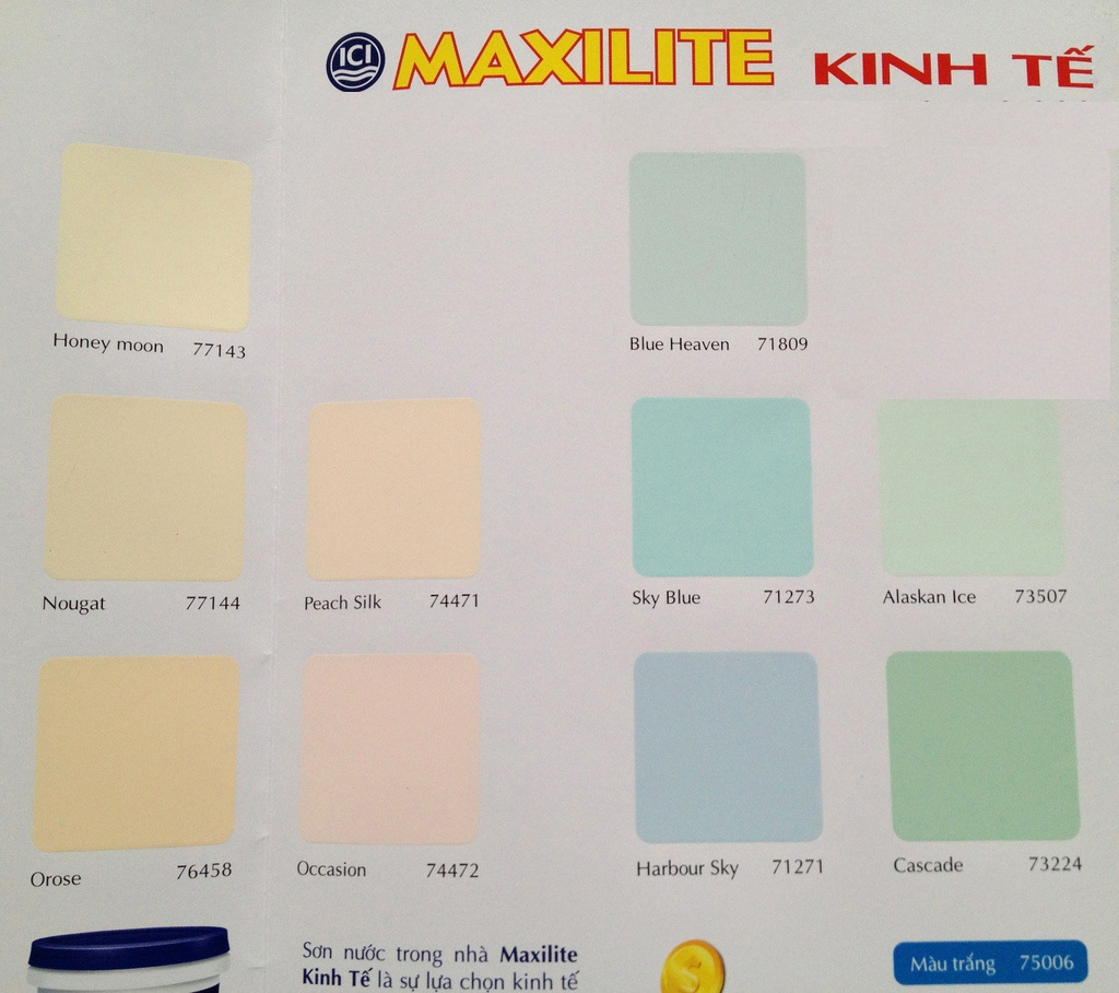- Sơn Maxilite màu sắc đa dạng phong phú để bạn thoải mái lựa chọn.