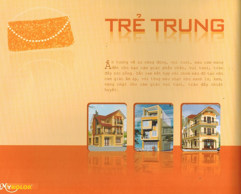 - Vẻ đẹp của ngôi nhà luôn là yếu tố quan trọng khi mọi người chọn lựa màu sơn. Màu sơn không chỉ giúp làm nổi bật kiến trúc của ngôi nhà mà hơn hết nó được coi là yếu tố gián tiếp tạo cho bạn một không gian sống lý tưởng nhất. Chính vì vậy, để đáp ứng được tất cả các yêu cầu trên mà có nhiều người đã và đang lựa chọn sơn Mykolor màu cam cho công trình của mình.